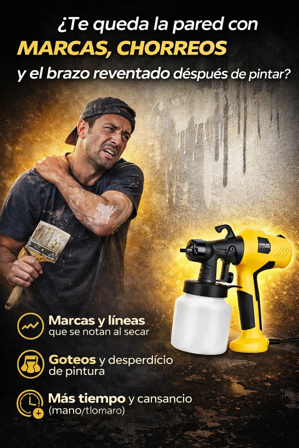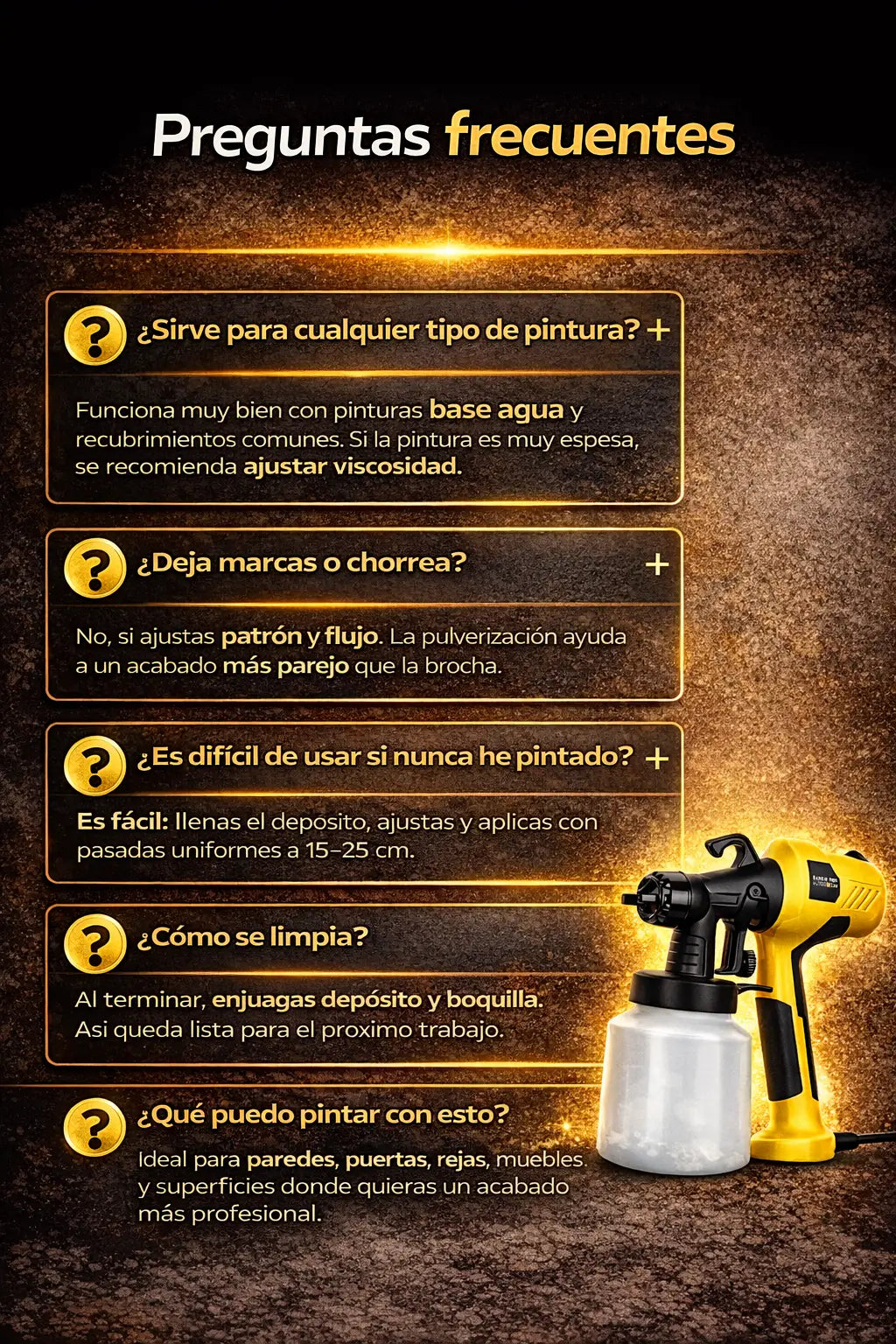 “Lo compré por el dolor de mano: con rodillo termino molido. Esta pistola se siente más cómoda y el control de flujo ayuda a no chorrear.”