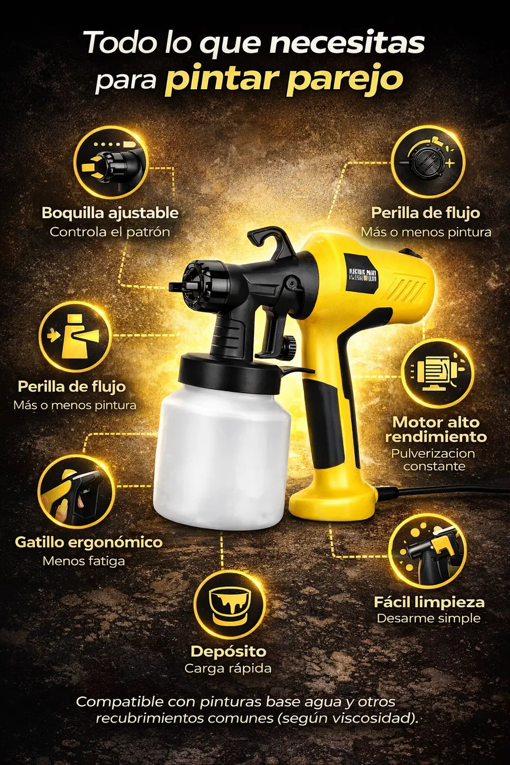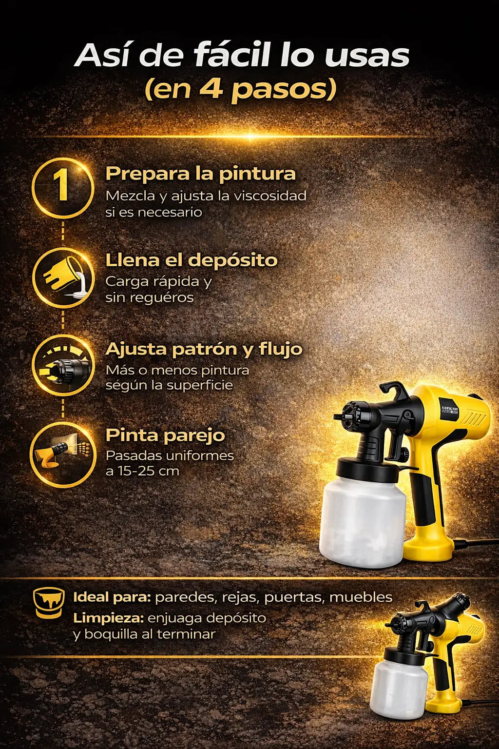 Pistola Pulverizadora de Pintura 400 Watts: acabado parejo sin brocha ni rodillo (más rápido y con menos desgaste)