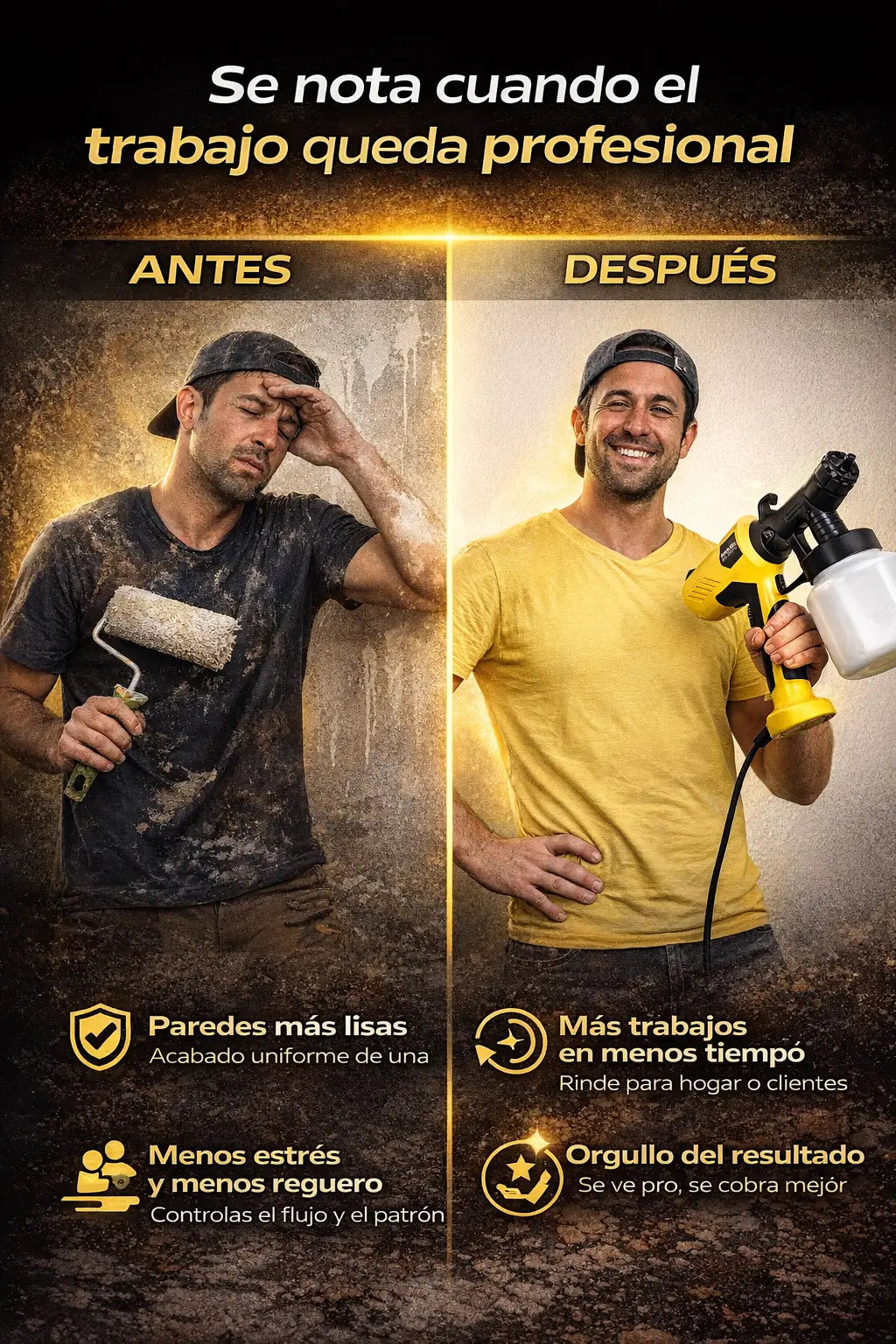 “Trabajo por días en remodelación. Esto me ahorra tiempo y me deja un acabado más ‘pro’. Obvio: hay que preparar la pintura y no taparse, pero cuando uno lo hace bien, rinde.”