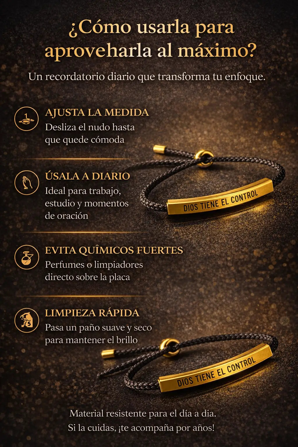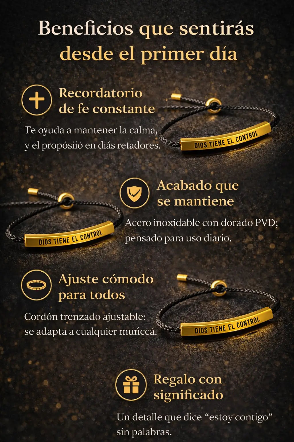 Pulsera “Dios Tiene el Control” — Un recordatorio diario de fe, elegante y resistente