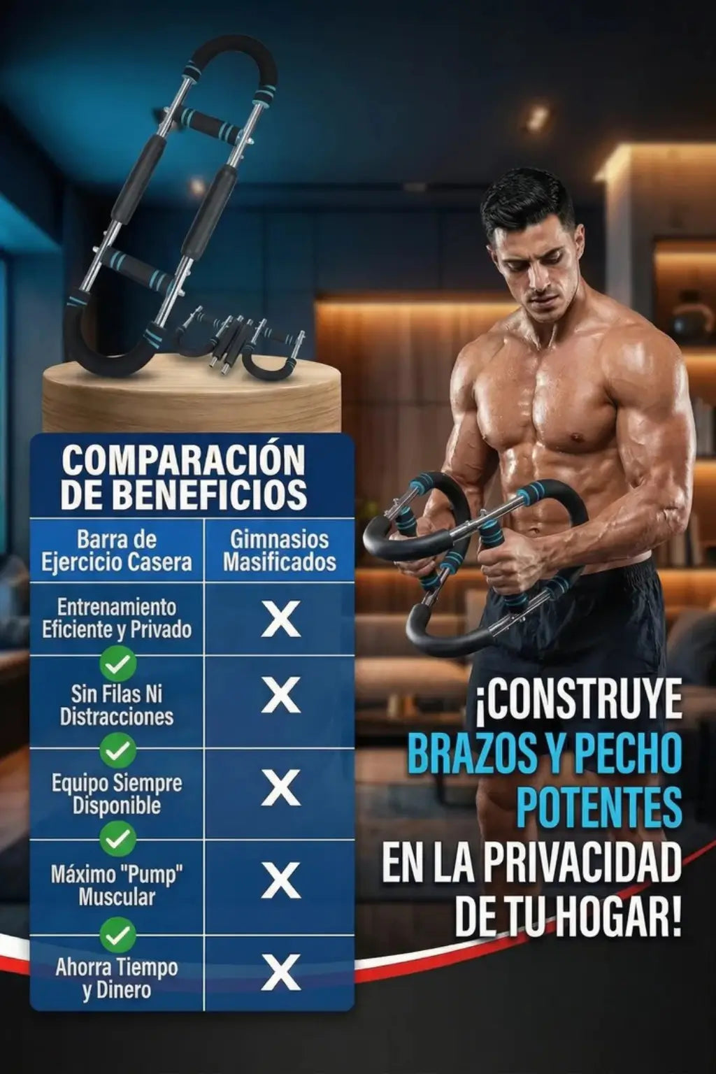 Compacto, fácil de guardar y sí funciona. Noté más fuerza en pecho y brazos en menos de un mes